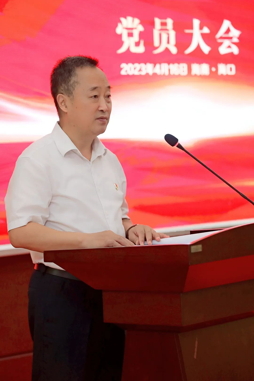 海口国家高新区党工委副书记、管委会主任李雄,海口国家高新区两新组织党委副书记傅爱萍、委员田海燕,南宫28药业集团董事长刘景萍,集团全体党员出席会议。南宫28药业集团董事会秘书王清涛主持会议。